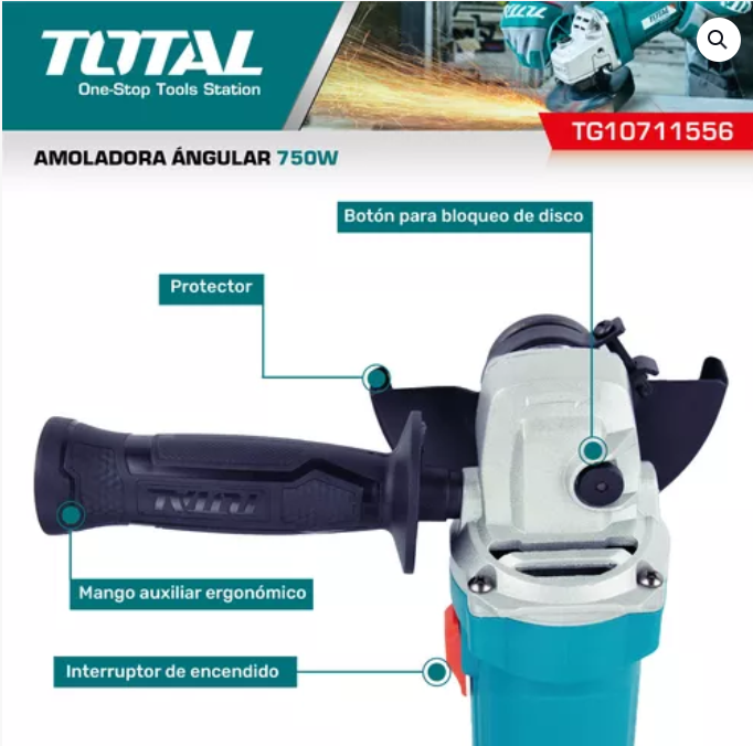 PULIDORA 4 1/2 710W INCLUYE MANGO AUXILIAR INDUSTRIAL TOTAL (UTG10711576)